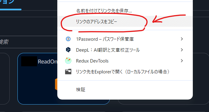 URLは、AWS アクセスポータルの「アプリケーション」タブにあるログインしたいAWSアカウントのURLをコピーします。