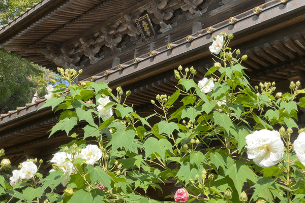 白繋がりでは山門前の酔芙蓉も良い雰囲気で撮れたと思います。